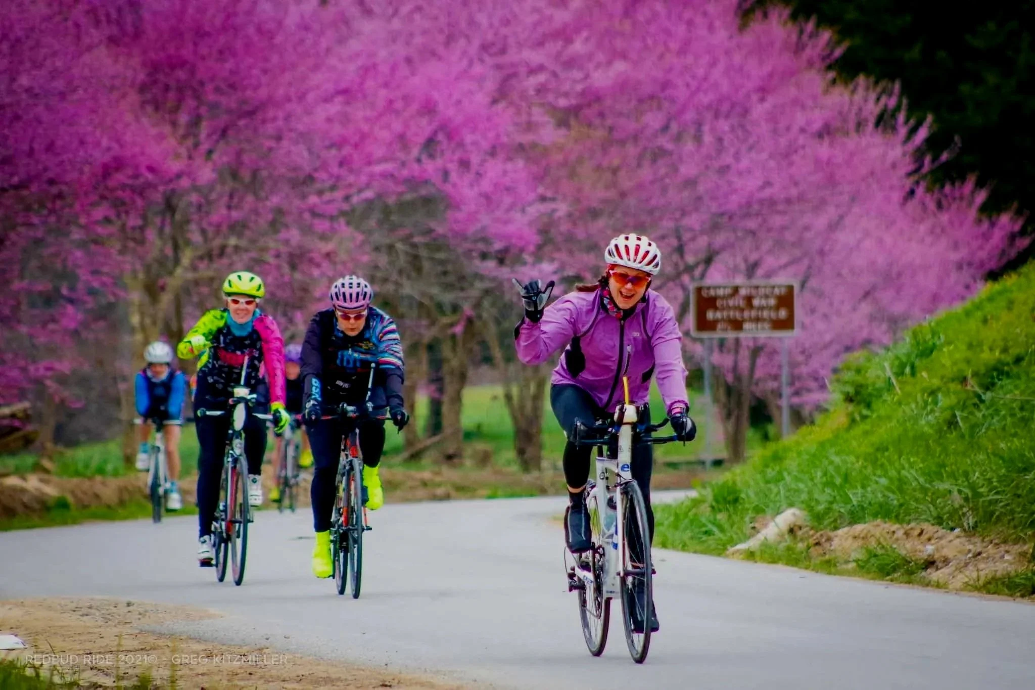 The Redbud Ride begins at 7:00 AM, sending cyclists out onto some of the most scenic roads in the region during peak redbud bloom.Saturday Morning–Afternoon
