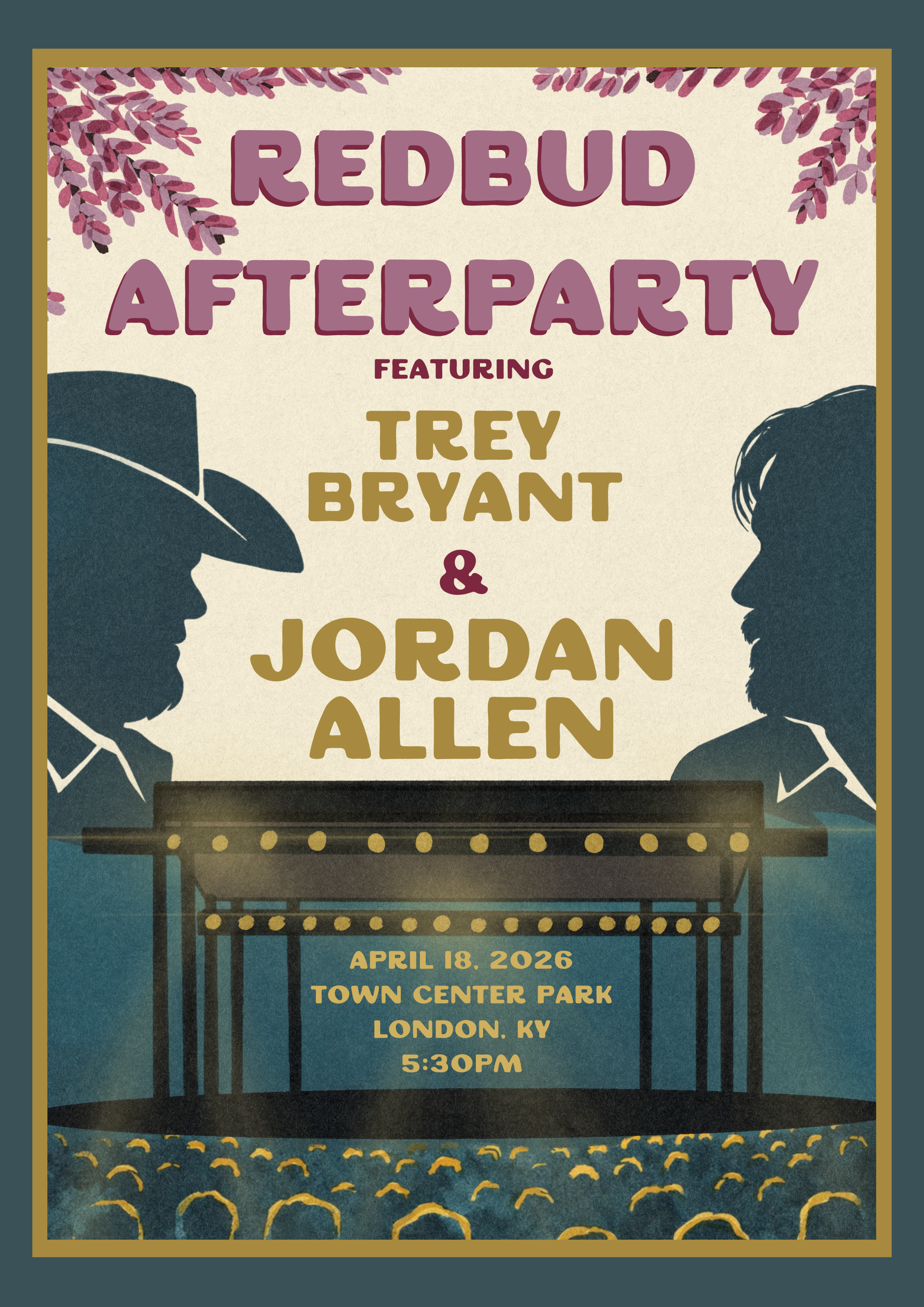 Redbud Weekend concludes with an After-Party in Town Center Park, bringing the community together for music, food, and celebration. -